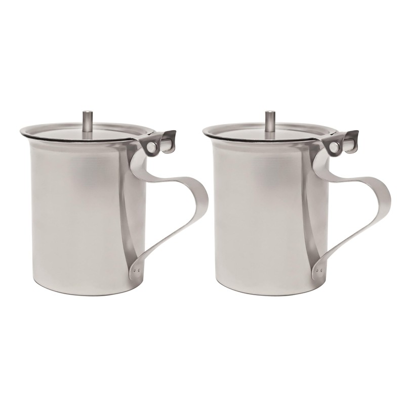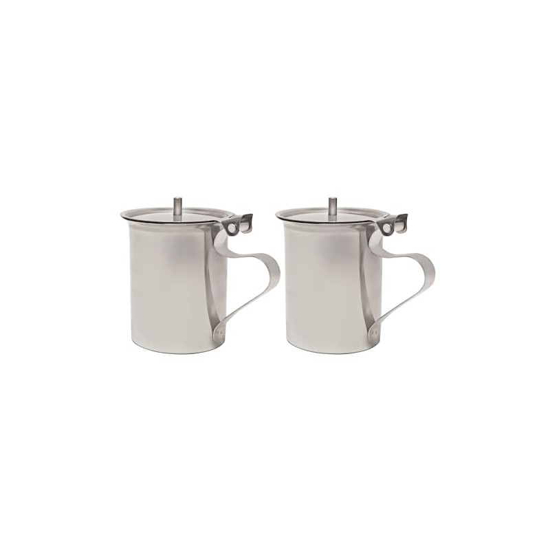 Stainless Steel Creamer Dispenser with Handle, 10 oz, Flat Lid Stackable, Mirror Finish (2, Non Stackable Server)