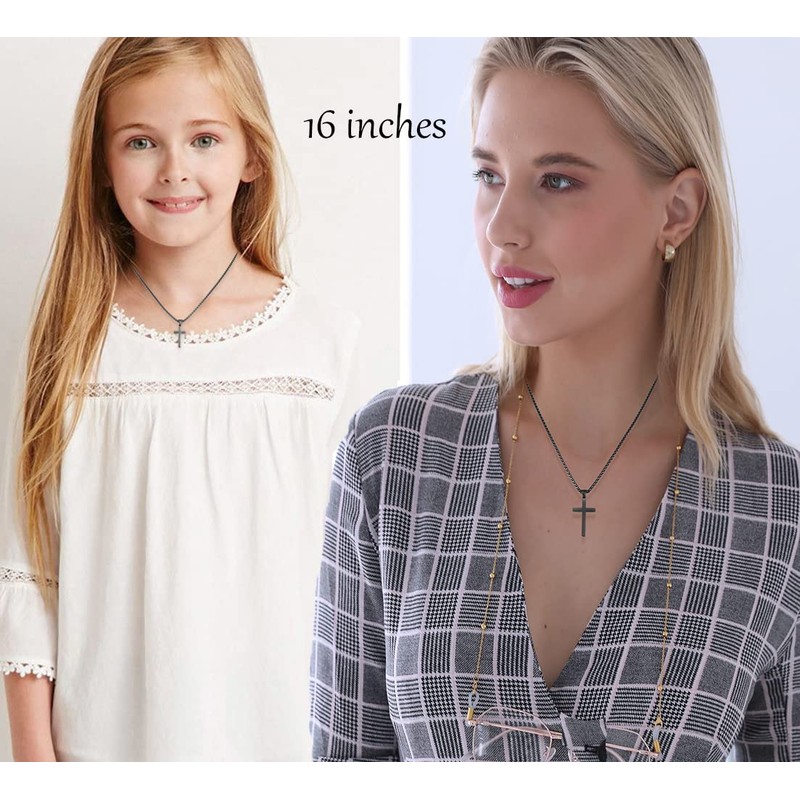 Stainless Steel Cross Necklace for men,Black Cross Necklace for boys kids tiny Small Cross Pendant Necklace 16 inches Simple Jewelry thin cross chain for mens