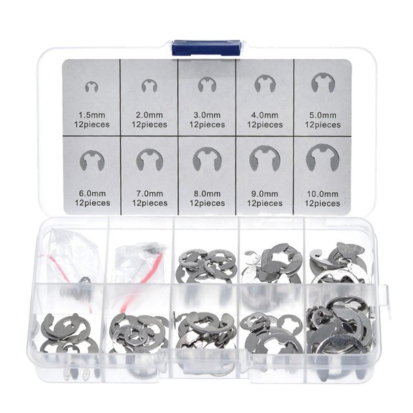 Stainless Steel E-Clips Set, 10 Sizes Circlips External Retaining Ring E Clips Assortment Kit, 120 Pieces