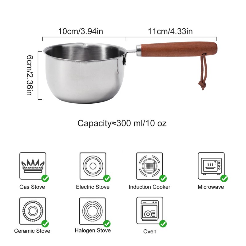 Stainless Steel Hot Oil Pan With Wooden Handle Breakfast Pot Milk Pan Small Saucepan For Making Sauces Reheating Soup Heating Milk(300ml)