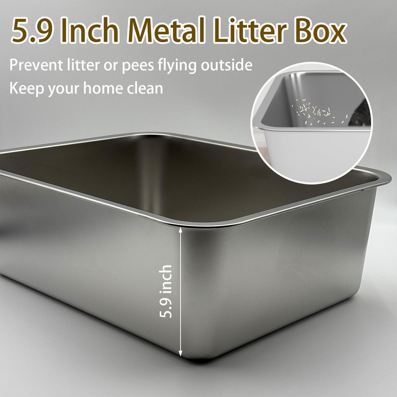 - 5.9-inch Litter Box: Stainless steel bin toilet is enough to keep litter and urine from flying everywhere, keeping your home clean and tidy while you share quality time with your furry friends