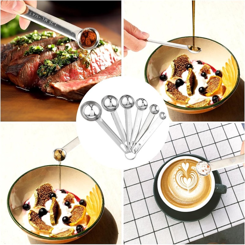 • Multipurpose: These measuring spoons can be used for both wet and dry ingredients.and easy to Reach into the Smallest Jars! The essential measuring tool in the process of having coffee, tea or soup,etc
