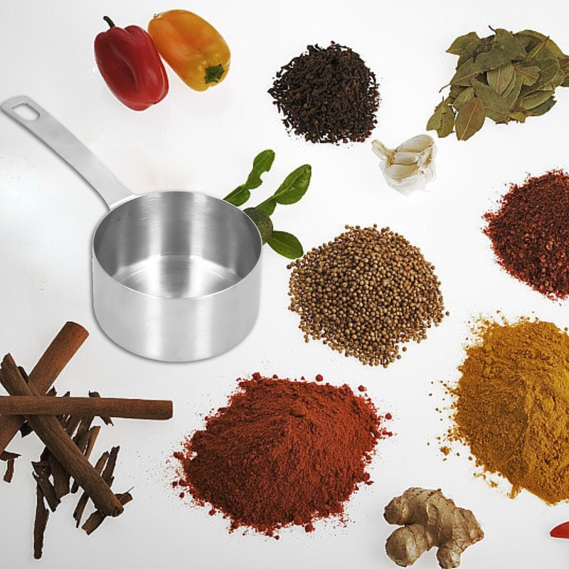 - STAINLESS STEEL MATERIAL: This measuring spoon cup crafted from 304 stainless steel, sturdy and reusable. These stainless steel measuring cups stackable are fit for all styles of kitchen or restaurant.