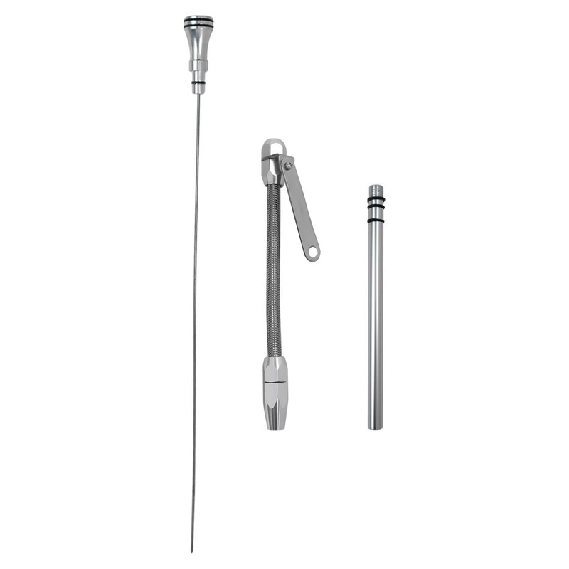 Note: Make sure the braided stainless steel part of the dipstick tube assembly is not touching the exhaust at any point. Package Includes: 1x Oil Dipstick