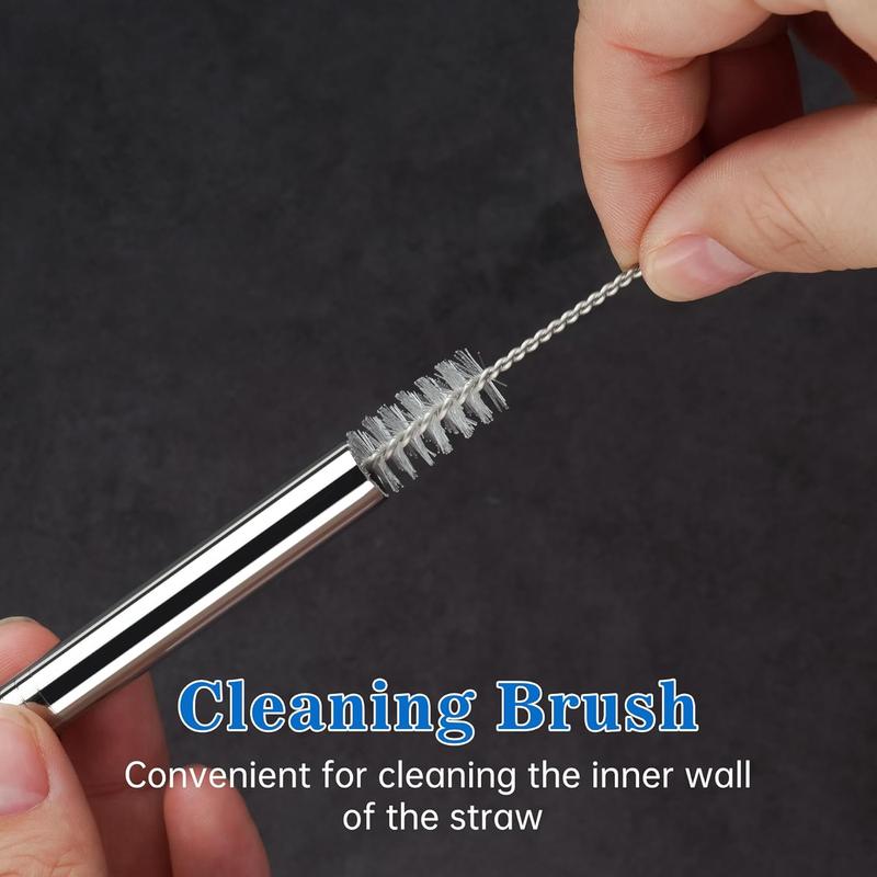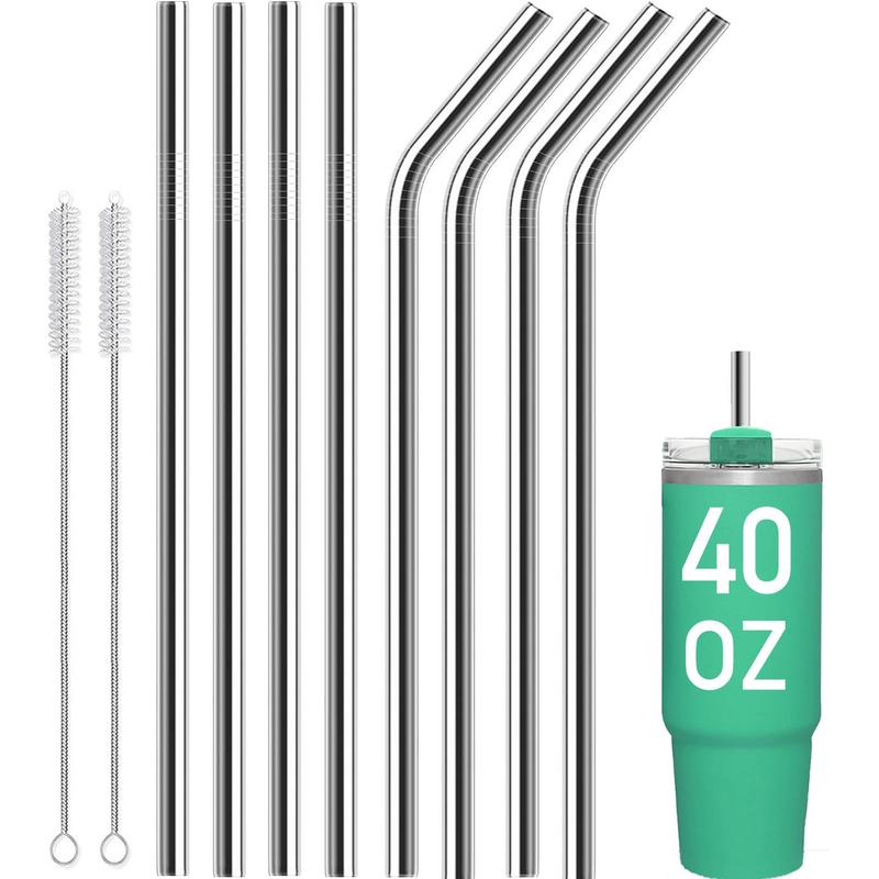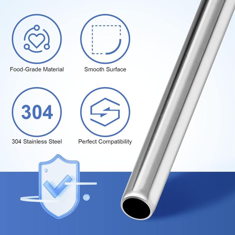 Stainless Steel Straw & Cleaning Brush Set, 5/10pcs/set Reusable Extra Long Metal Straw & Brush Set, Bar Utensils for Home Kitchen Party - Colour: Silver, Specification: 5 Counts(4 Straws+1 Brush)