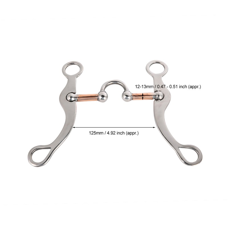 1、Great bit for young horses 2、Stainless steel with sweet iron on mouthpiece 3、Made of stainless steel material, anti-rusty, non-toxic and safe 4、The rollers act as a pacifier and help keep horse's mouth soft and moist 5、The roller of horse's mouth is attached to the reins to control the horse's activities