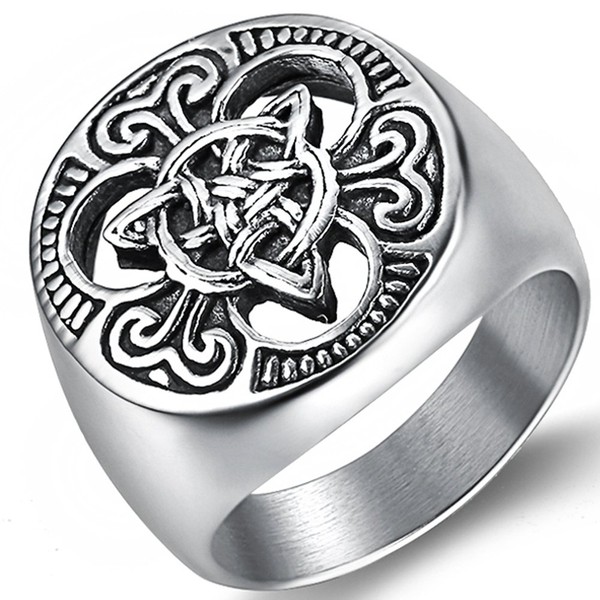 Stainless Steel Vikings Celtic Knot Signet Biker Ring (Silver, 6.5)