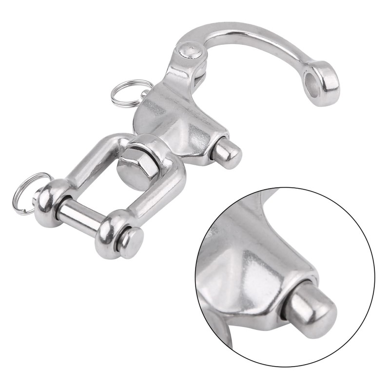- Easy Installation: Packaging & High Safety: Package includes 1 x Swivel Shackle Only. Compact size, easy to install and fits anywhere. swivel jaw snap sailing shackle, Its safe working load depends on application, and even orientation of the shackle under load, and the split ring on plunger pin is spot welded to ensure safety.