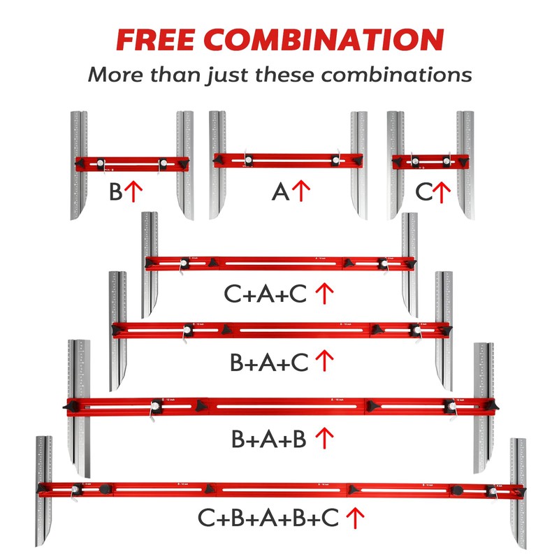 - Flexible combination: This stair tread measuring tool adopts a free splicing design and is equipped with two sets of extensions of 8/12/16 inches, which can be flexibly combined, and the total length can be adjusted from 8 inches to 60 inches, providing flexibility for projects of different sizes.