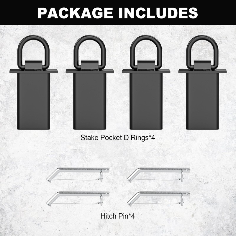 - 【Premium Solid Steel Build】 These stake pocket d rings are made of solid steel construction and coated with black powder, with high strength excellent durability. They can be positioned in any stake pocket (side, front, or back).