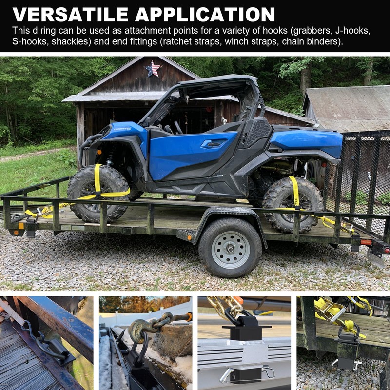 Versatile Application: Ideal for a wide range of applications, these stake pocket D rings are perfect for securing motorcycles, ATVs, furniture, equipment, and more in trucks, trailers, and utility vehicles, versatile design allows for flexible use in various transportation and hauling scenarios.