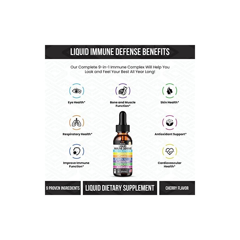 - Research Driven, Backed By Science - Each bottle of our premium immune support drops contains a 60 serving supply meaning that it is more convenient than ever to stay healthy and keep your immune system functioning at a high level! Additional health benefits include skin health, vision support, brain function, blood circulation, mood support, bone support, and improved muscle function! Don't leave your wellbeing up to chance, get protected with our immune system vitamins blend today!