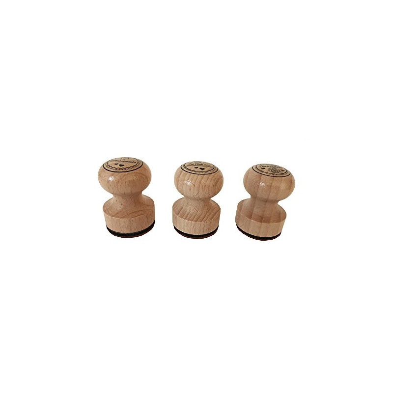 Stamp Set of 3 Wooden Stamp “Ein kleines Dankeschön, selbstgemacht,...für Dich”, 3 cm Diameter