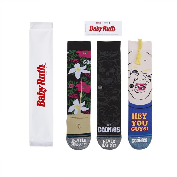 - Goonies-Inspired Design: Show your love for the classic misfit squad with these Stance Goonies Select socks, featuring Sloth, 'never say die' skull print, and truffle shuffle themes