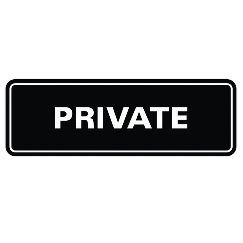 This wonderful 'PRIVATE Door / Wall' sign can be attached to the door, wall or window of your home or business. The sign has been laser engraved so the words are all etched into the plastic. Comes in multiple colors.