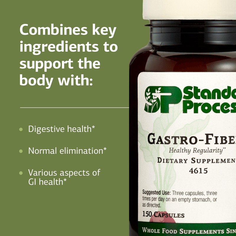 Standard Process Inc. Gastro-Fiber - Whole Food Digestion and Digestive Health, Indigestion, and Cramps with Collinsonia Root, Apple Pectin, and Fennel Seed - 150 Capsules