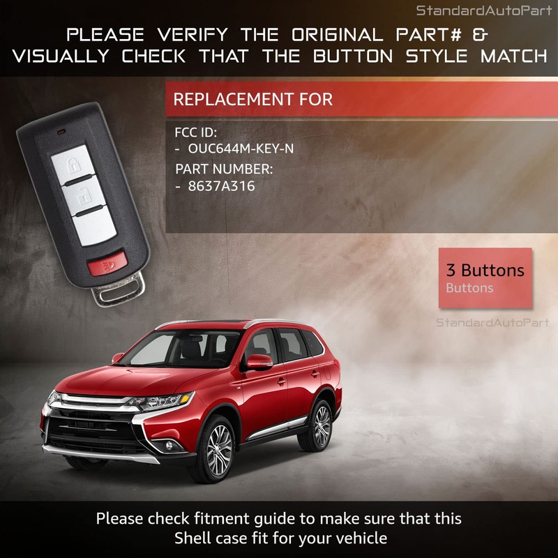 StandardAutoPart Shell Case for Smart Car Remote Key fob Compatible with Mitsubishi Outlander Sport Mirage OUC644M-KEY-N 8637A316