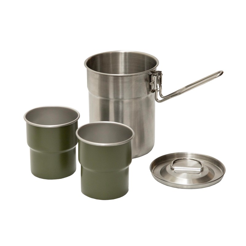 • Set includes: 1 x 1 L pot with lid, 2 x 10 oz. cups and a mesh carry bag