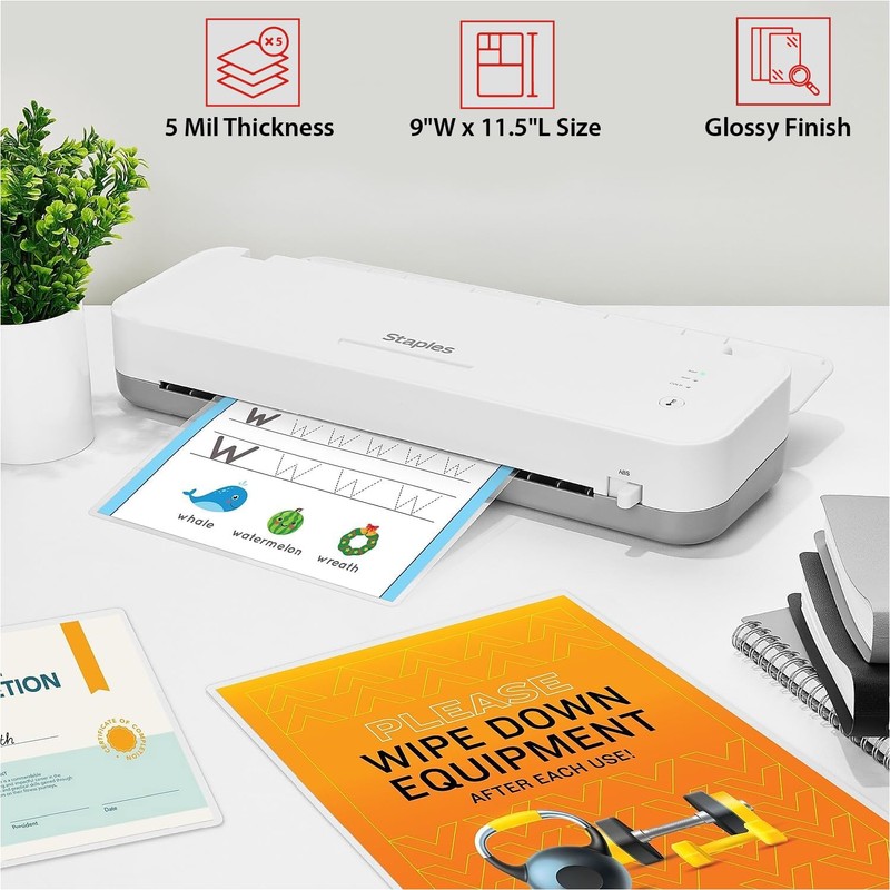Staples Thermal Laminating Pouches, Clear Lamination Pack with Waterproof Seal, Letter Size, 9 x 11.5 Inch, 5 Mil, 100-Pack