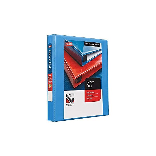 Staples 976056 1-Inch Staples Heavy-Duty View Binder with D-Rings Light Blue