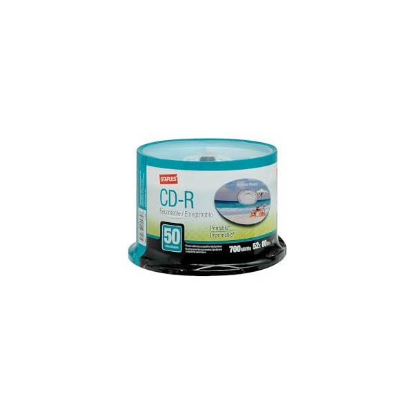 Staples Printable CD-R Recordable 50 Discs 80 Minutes 700MB