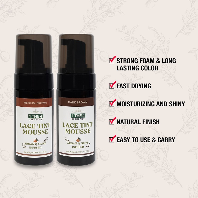 STAR CARE 1 THE 4 Cosmetics Argan & Olive Infused Lace Tint Mousse 3.38oz/ 100ml Concealer Tinted Mousse for Lace Wigs Hair Wigs Perfect Match Your Skin Tone (Medium Brown)