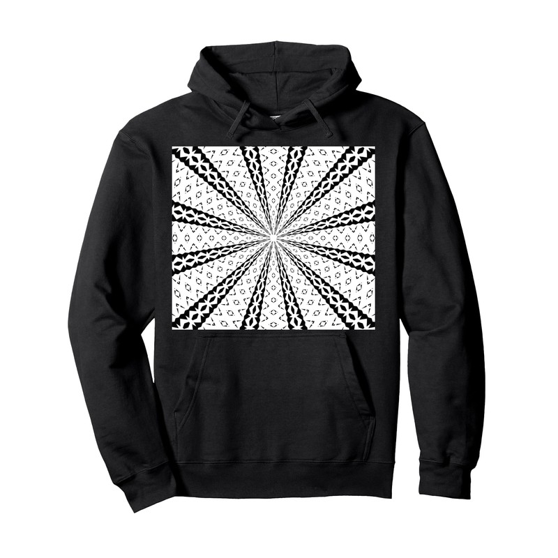 Star Effect Geometric Symmetrical Pattern Black On White Pullover Hoodie