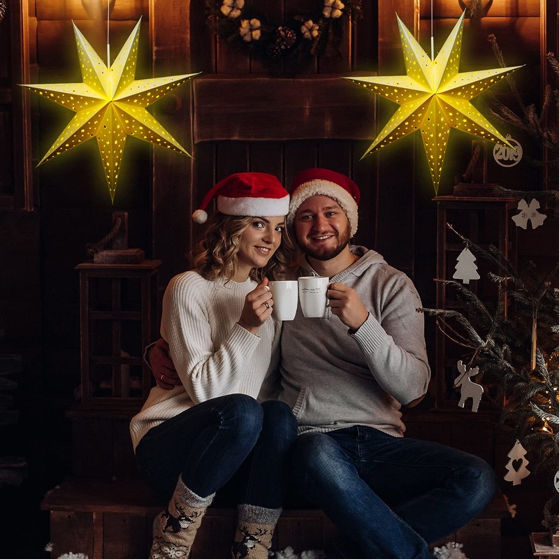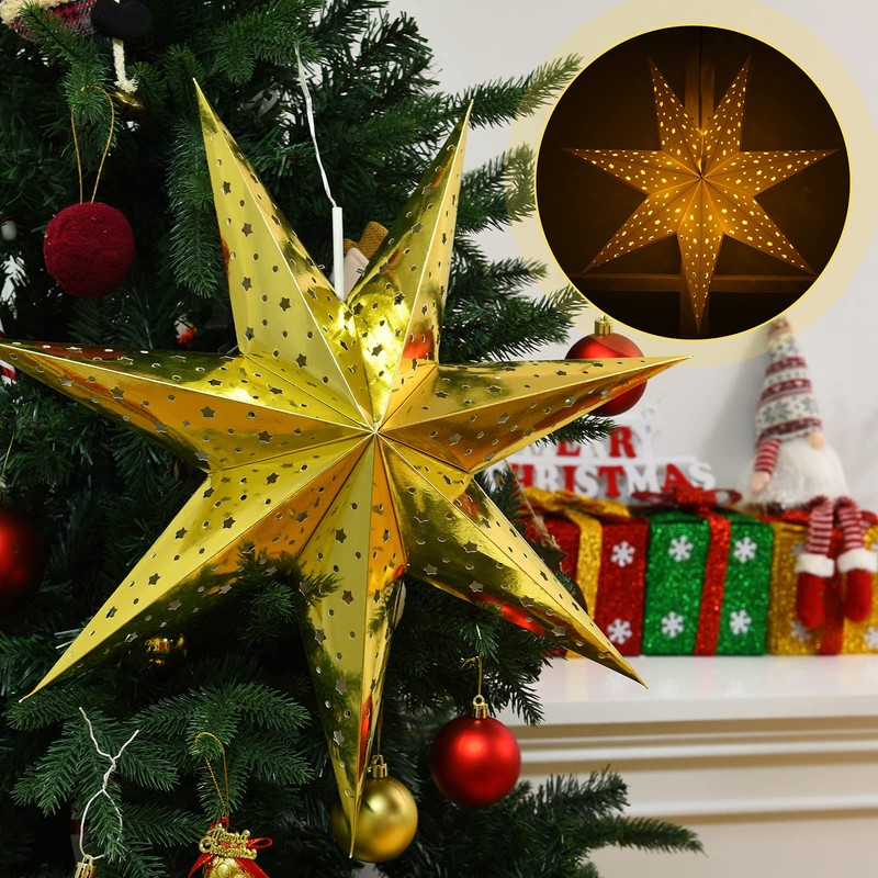 - Easy to install: star paper lanterns have a drawstring at the top, so you can pinch the corner of the star, and unfold the 7 pointed star paper lantern while pressing it down, then you can easily prop up the paper lantern, and then you can use the string to hang the Christmas ornaments in any place you like