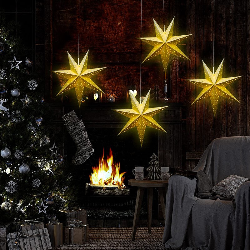- Delicate decorative lampshade: star paper lantern ornaments can be applied on the top of the Christmas tree, hanging from ceiling, windows, wall backdrops, doors, branches, fence and many other places, suitable for Christmas, Thanksgiving, weddings, birthday parties and various family and friend gatherings, creating a romantic atmosphere for you