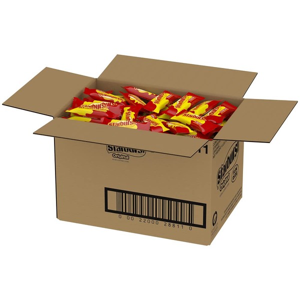 - This 4lb box contains a clear plastic bag filled with individually wrapped fun size STARBURST chewy candy pouches