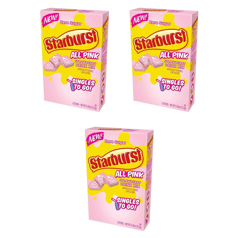 Starburst Strawberry Singles To Go Drink Mix, 0.43 OZ, 6 CT (Pack - 3) Pack of 3