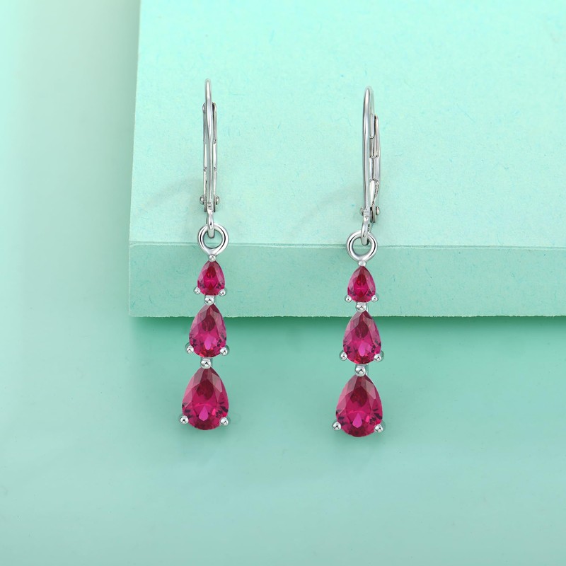 Starchenie Teardrop Dangle Earrings Sterling Silver Leverback Ruby Jewelry