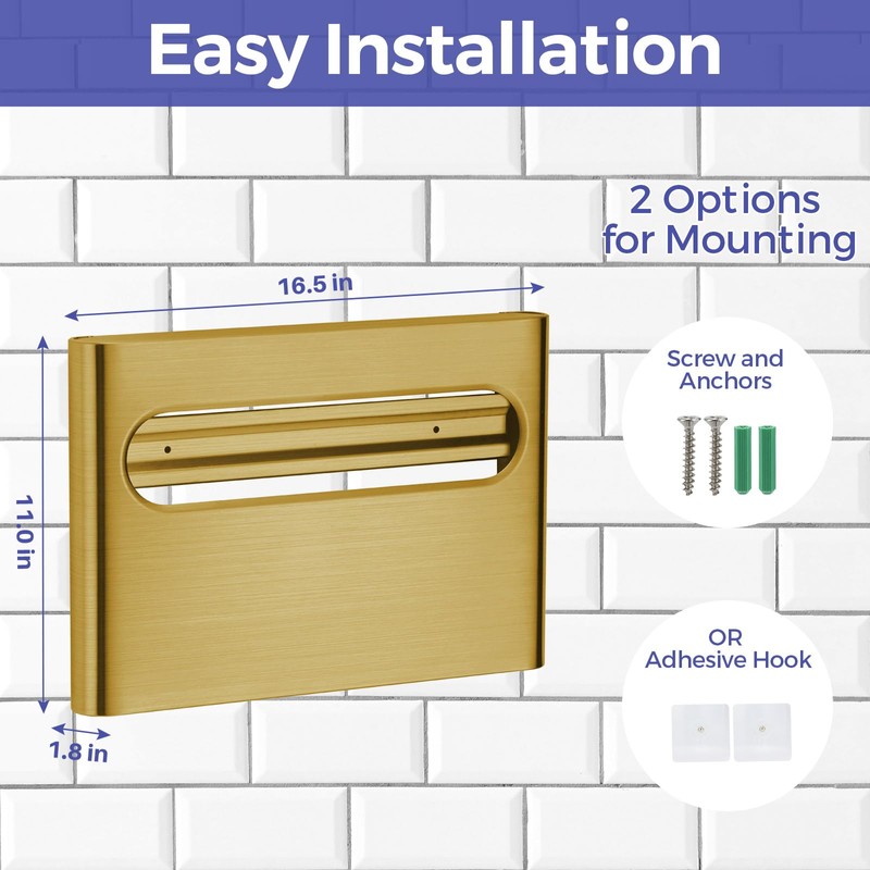 Stardrix Slim Brushed Gold Stainless Steel Toilet Seat Cover Dispenser – Desi...