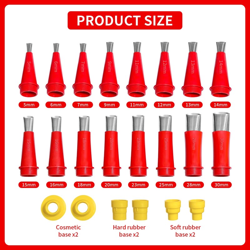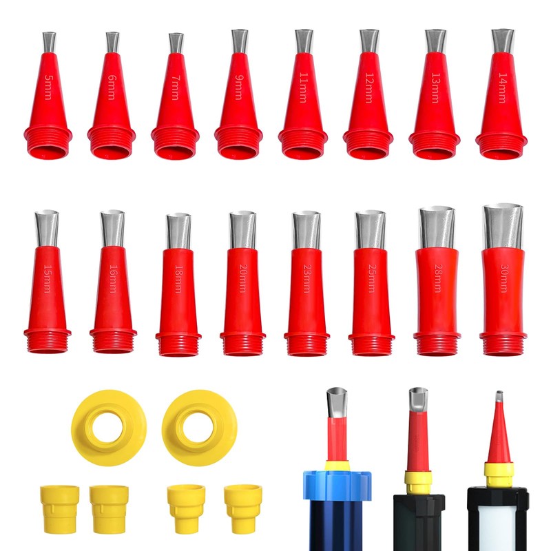 • 【Multiple Options】 The product comes with 16 different sizes of sealing glue nozzles with 6 connection bases. Choose the size of nozzle you need to eliminate messy and uneven sealing work. Make your work easier when filling and closing gaps