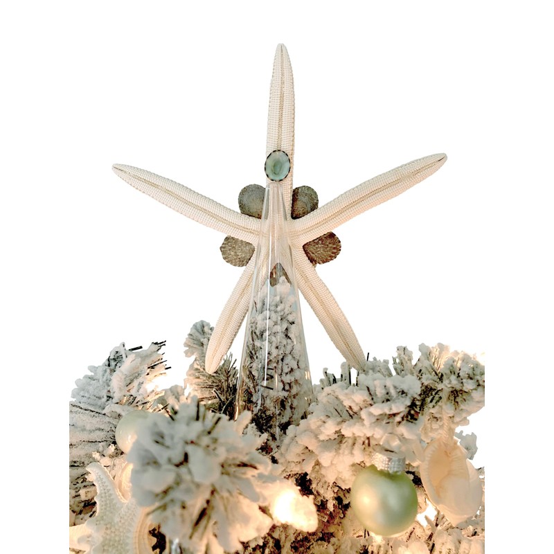 Starfish Christmas Tree Topper with Blue Green Limpet Shells - real starfish and shells