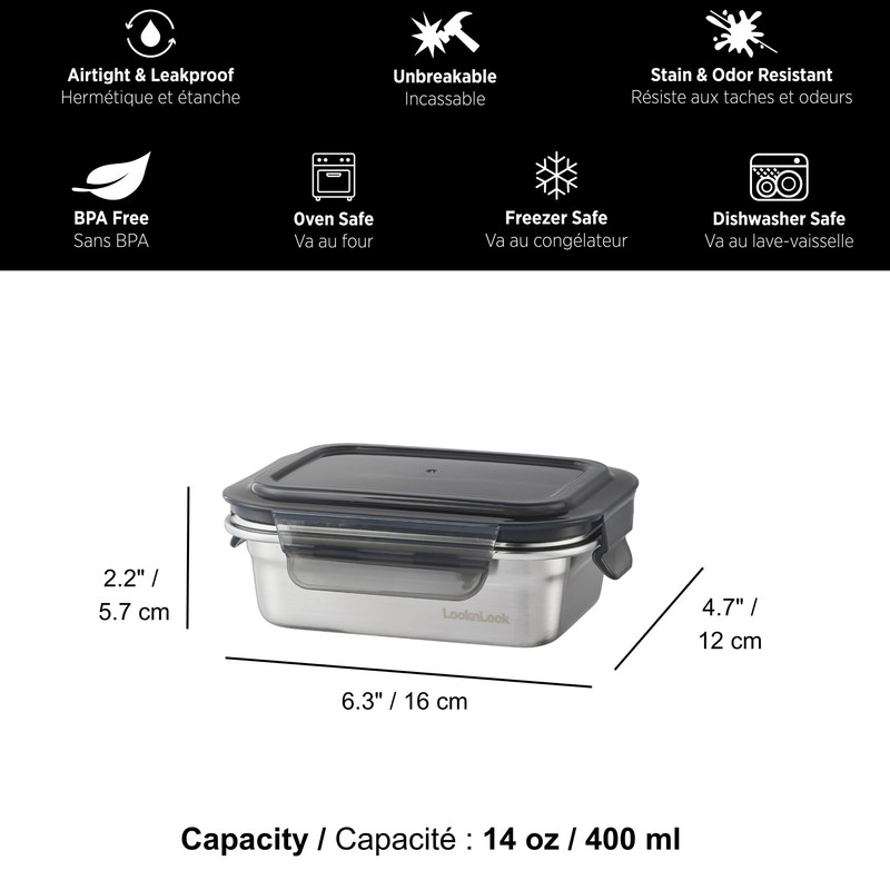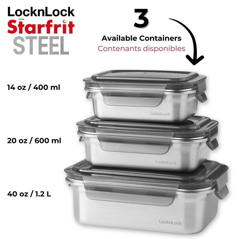 - Quality: The Starfrit LocknLock STEEL food containers are made of durable stainless steel, BPA-Free.
