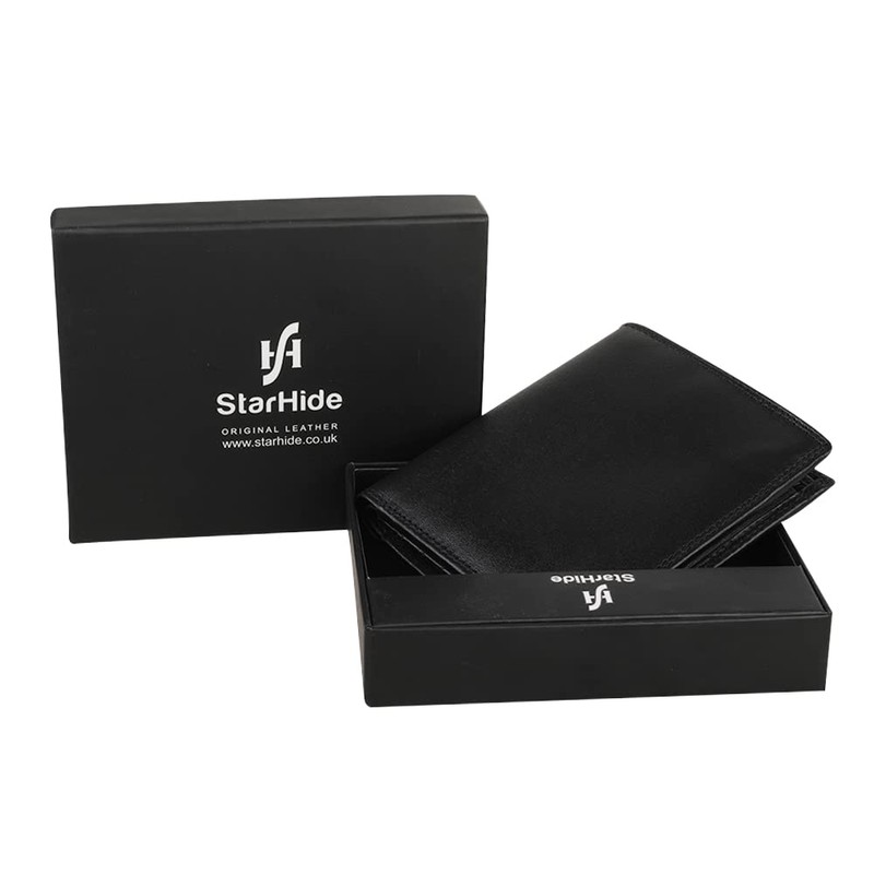 STARHIDE Men's Black Real Leather Wallets RFID Blocking Contactless Protection Bifold Multi Card Holder Organizer Wallet 2015