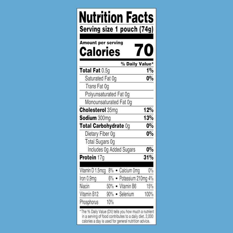 - Flavor Fresh Pouch: Our flavor fresh tuna pouch preserves the freshness of your favorite meal or snack, so it’s always delicious and ready when you are. There’s no can opener required or draining necessary - just tear, eat and go