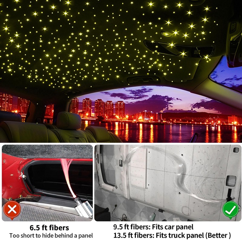 Starlight Headliner Kit 300pcs – Minimalist Style | 16W RGBW Fiber Engine, Twinkle, App Control, Music Sync, Easy Install for Car & Home