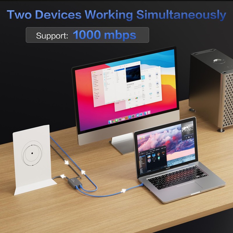 Starlink Ethernet Adapter for Starlink Gen 2, Multi Ports Adapter Starlink to RJ45 Fast&Stable Network Connection 1 to 2 [2 Devices Network Simultaneously] - Up to 1 Gbps