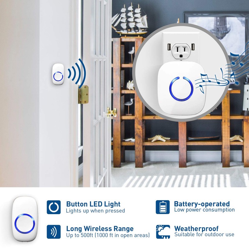 • Built in receiver MEMORY feature RETAINS doorbell chime/ringtone selection even when receiver is unplugged or powered off. Long range operation with the receiver at over 500 feet
