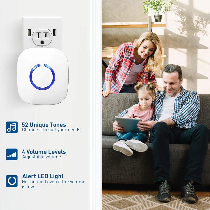 • WANT TO LISTEN TO OUR CHIMES/RINGTONES BEFORE YOU BUY? GO AHEAD - Just SCROLL DOWN to the Technical Specs section below and click on the Specification Guide link to DOWNLOAD the PDF file. Open the PDF to play all 52 ringtones. We're proud to announce we've developed a custom music chip in our doorbells that includes carefully selected. Over 50+ different ringtones. Operating range of over 500 ft (1000 ft in open area). 4 levels of adjustable volume from 25db - 110db.
