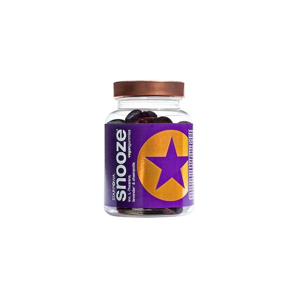 Starpowa Snooze gummies are formulated for a restful sleep. Each gummy contains 5-HTP, L-Theanine, Chamomile, Lavender, Griffonia Seed, Montmorency cherry, Vitamin B6, Asparagus Racemosus, Lemon Balm Leaf and more,