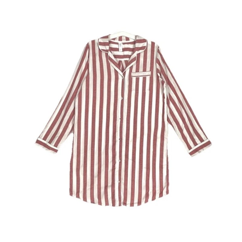 The Stars Above Striped Perfectly Cozy Flannel Plaid Nightgown is a cozy and comfortable pajama suit for women, featuring a red color with a striped pattern. Made of flannel fabric, this one-piece nightgown is perfect for a snug and warm sleep. The Stars Above brand ensures quality and a touch of style in this cozy nightwear garment, ideal for a relaxed and comfortable night's sleep.