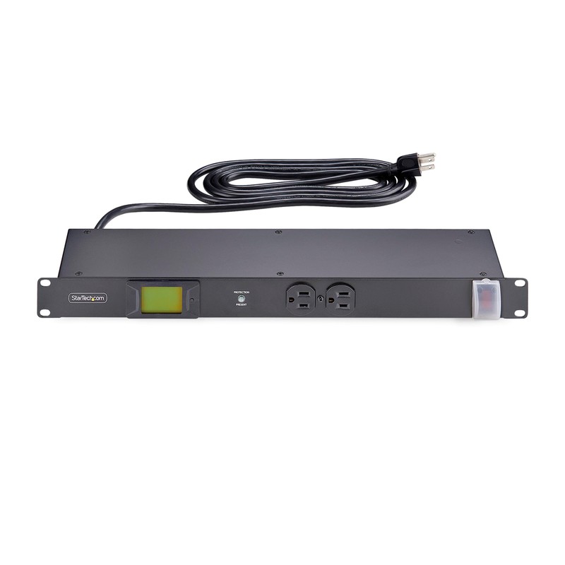 - 8-OUTLET 1U RACK MOUNTED METERED PDU: 8x NEMA 5-15R power outlets; 125V max and 15A circuit breaker; Built-in 8ft (2.4m) NEMA 5-15P power cord; Ideal power supply strip for 19" racks in server rooms/closets, data center, and testing labs