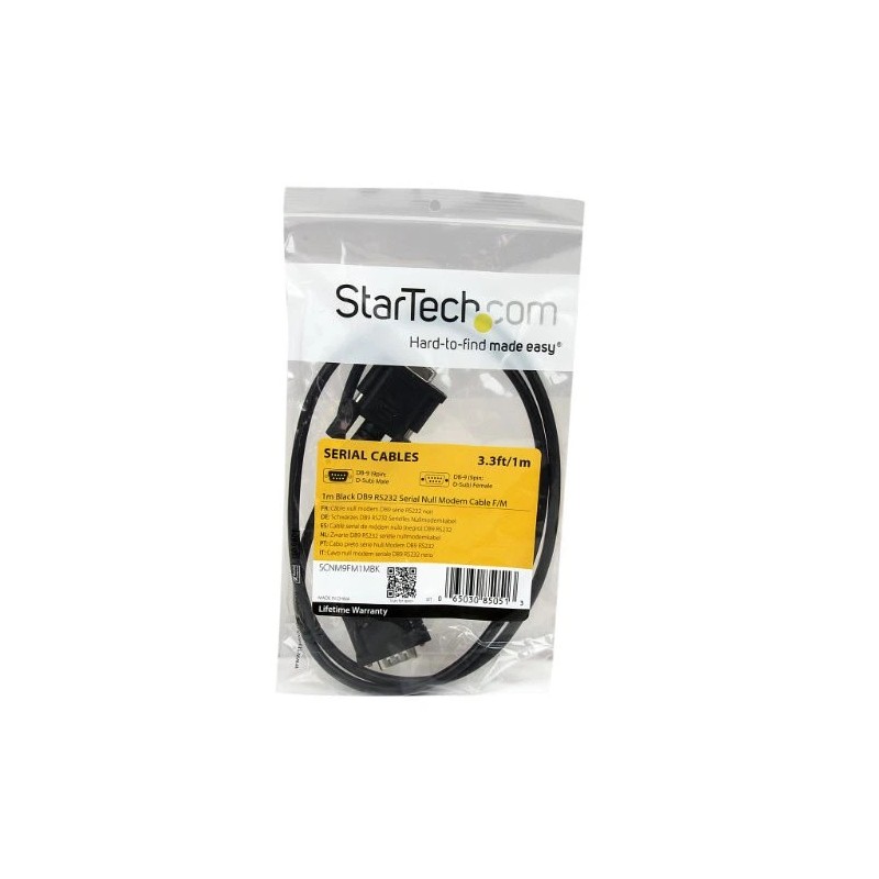StarTech 1m Black DB9 RS232 Serial Null Modem Cable F/M . Serial. 3.28 ft. 1 Pack. 1 x DB-9 Male Serial. 1 x DB-9 Female Serial. Shielding. Black.