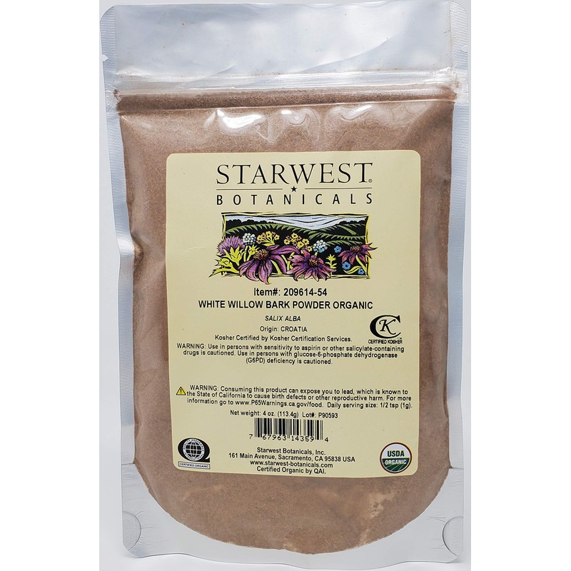 Starwest Botanicals Organic White Willow Bark Powder, 4 Ounces
