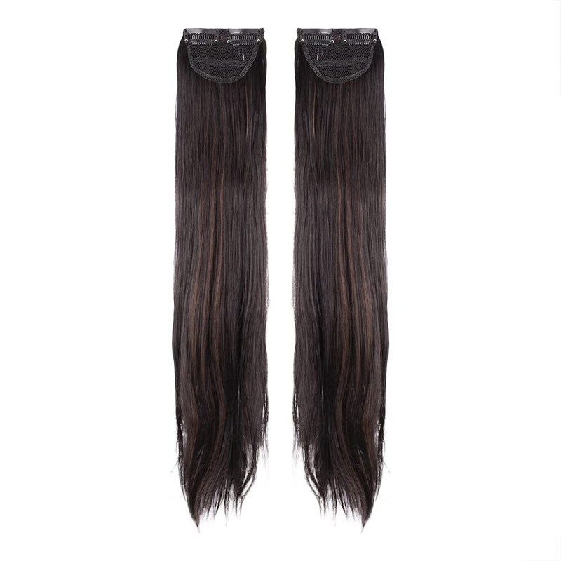 Stasia Street 24-Inch 2pcs Set Straight Clip-In Korean Synthetic Breatheable Hair Extensions for Women Natural Look Instant Volume & Length – Copper Highlights