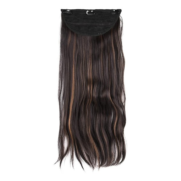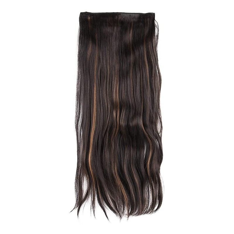 Stasia Street 24-Inch Crimped Clip-In Korean Synthetic Breatheable Hair Extensions for Women Natural Look Instant Volume & Length – Copper Highlights