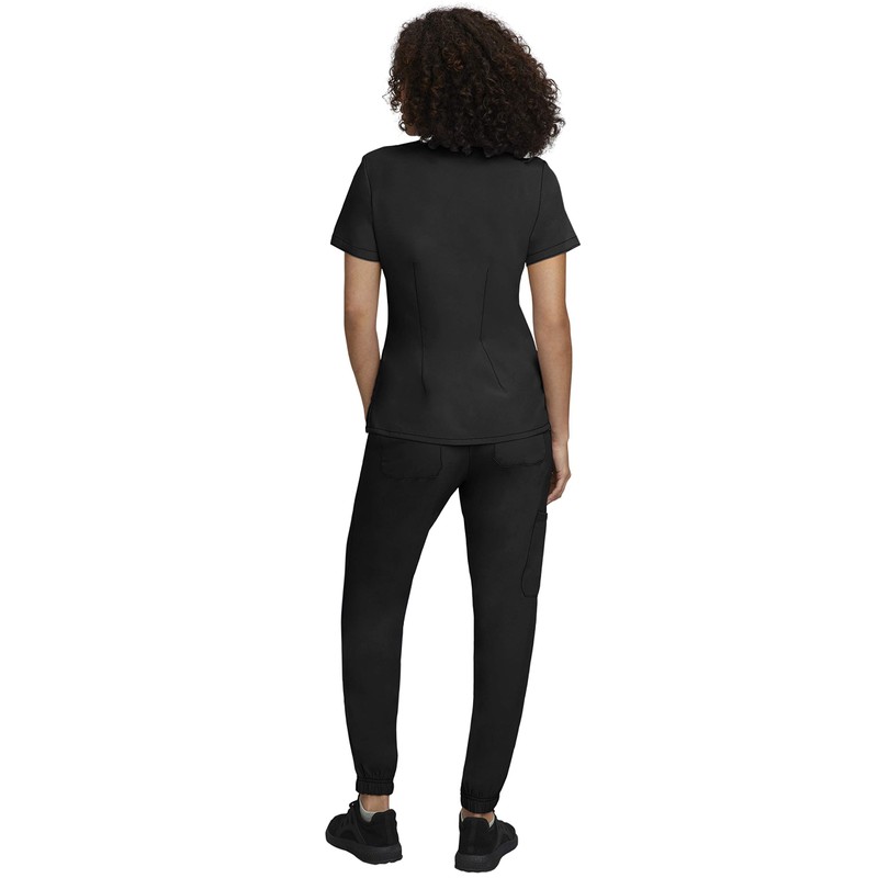 STAT MEDICAL WEAR Women Scrub Set, V-Neck Top with 3 Pockets and Drawstring Jogger Pant with 5 Pockets - 100210, M, Black